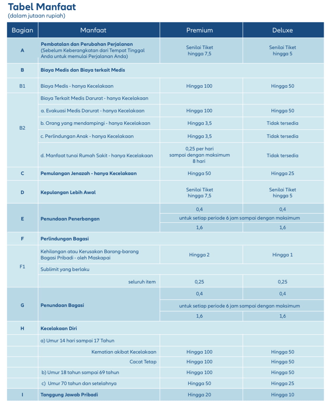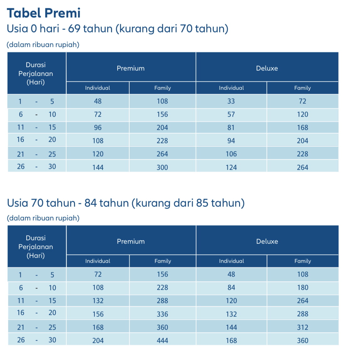 NB: Untuk premi asuransi perjalanan dalam negeri tahunan Allianz, dapat dilihat di halaman asuransi perjalanan tahunan Allianz (Allianz Annual Travel Insurance) di sini.