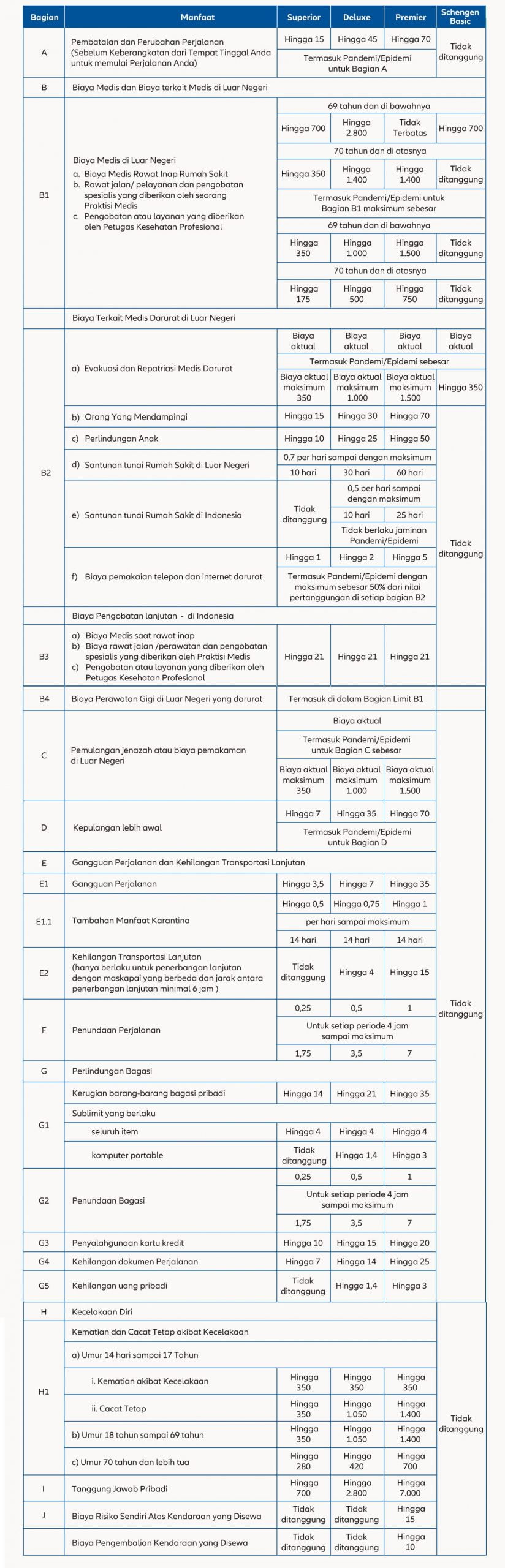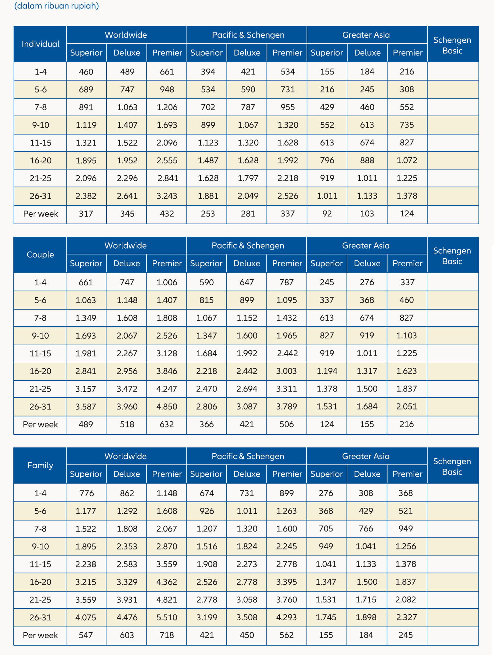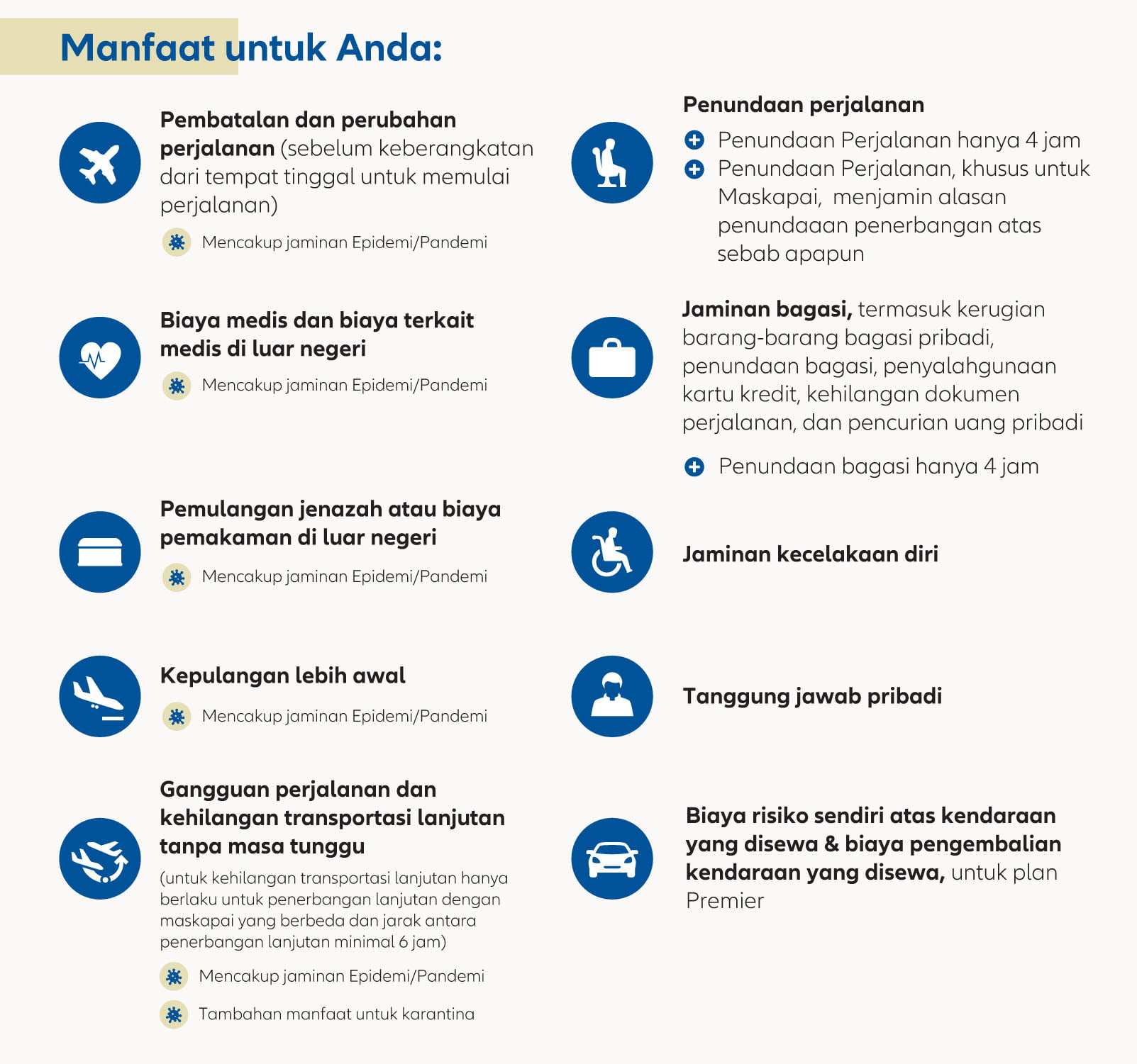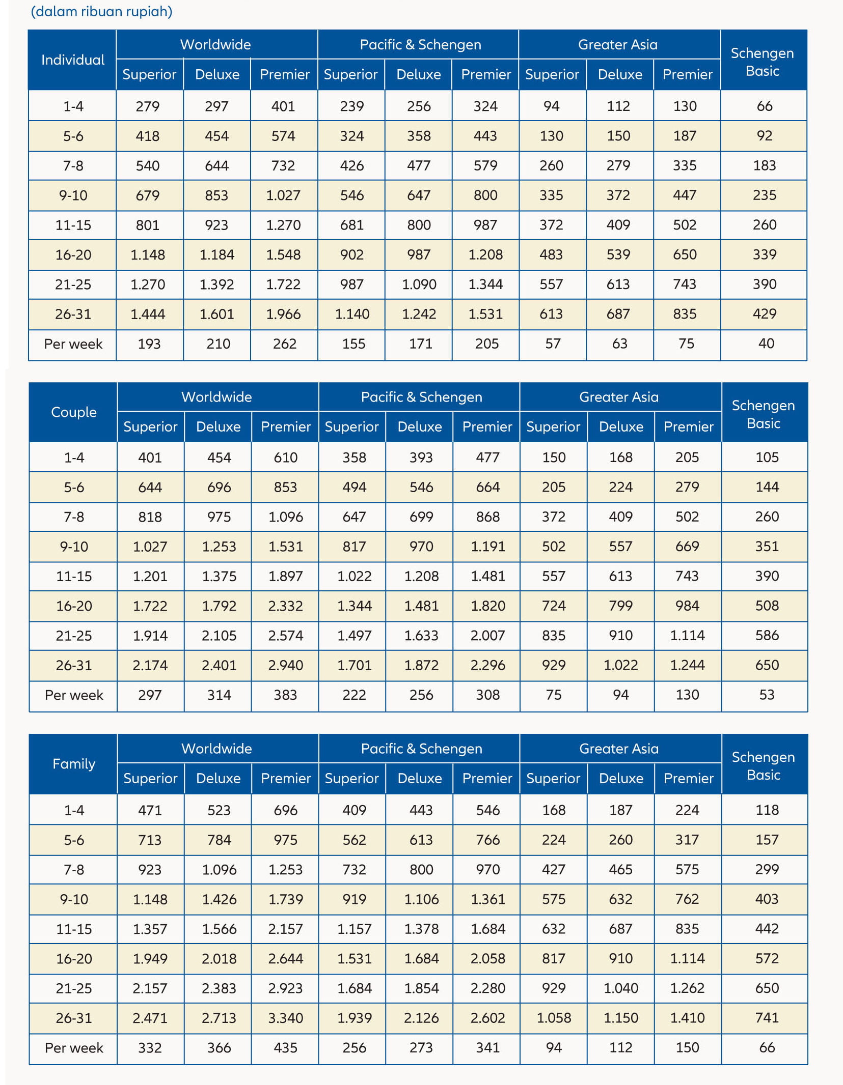- premi yang sangat terjangkau untuk menikmati proteksi lengkap asuransi perjalanan anda.