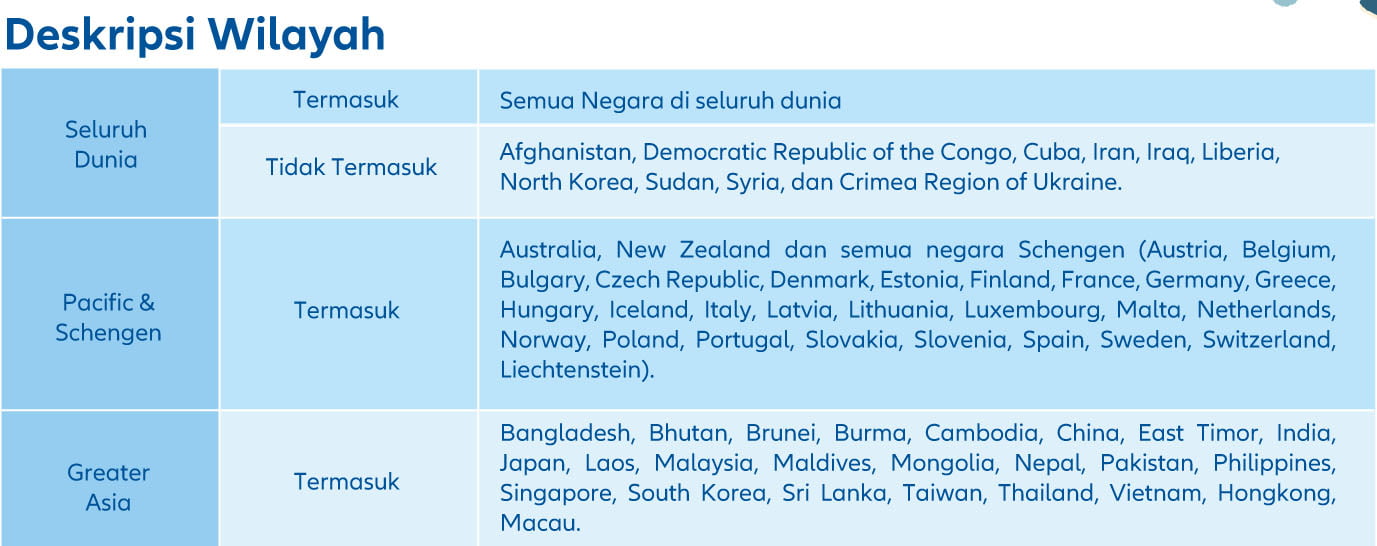 Wilayah Pertanggungan Asuransi Perjalanan Tahunan Allianz New TravelPRO