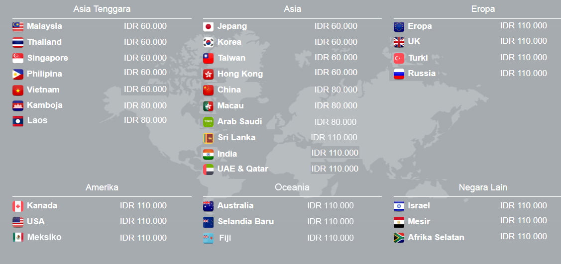 Modem Travel Wifi dari DATA MIFI dapat digunakan di negara antara lain :